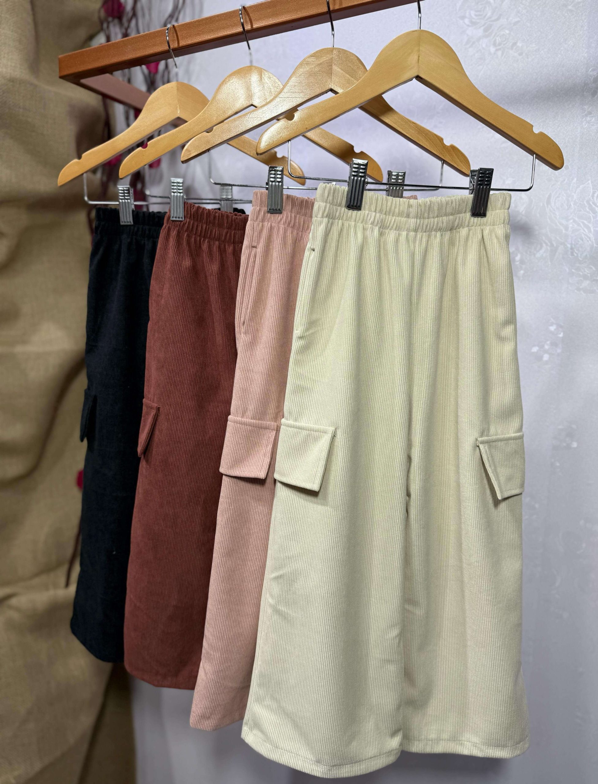 Calça wideleg com bolsos laterais confeccionda no tecido cotele veludo
