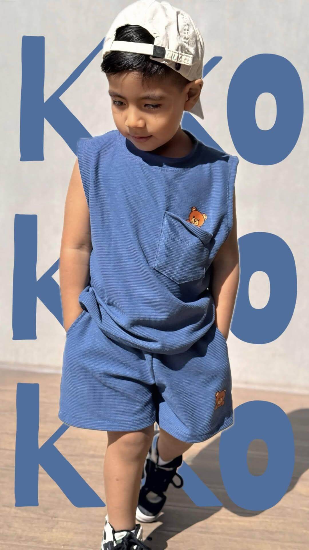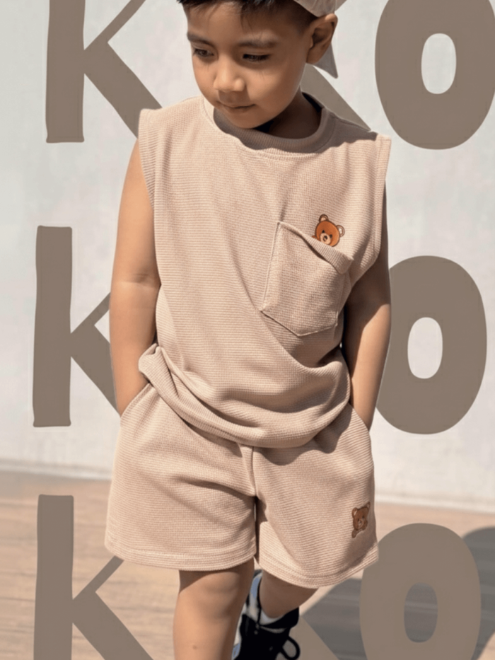 Esse conjunto masculino é composto por regata e bermuda em malha texturizada, ideal para os dias mais quentes. O destaque fica por conta da estampa de ursinho super fofo no bolso da blusa e na perna da bermuda, trazendo charme e delicadeza ao look. Modelagem confortável com ótimo caimento e tecido leve, perfeito para brincar com liberdade