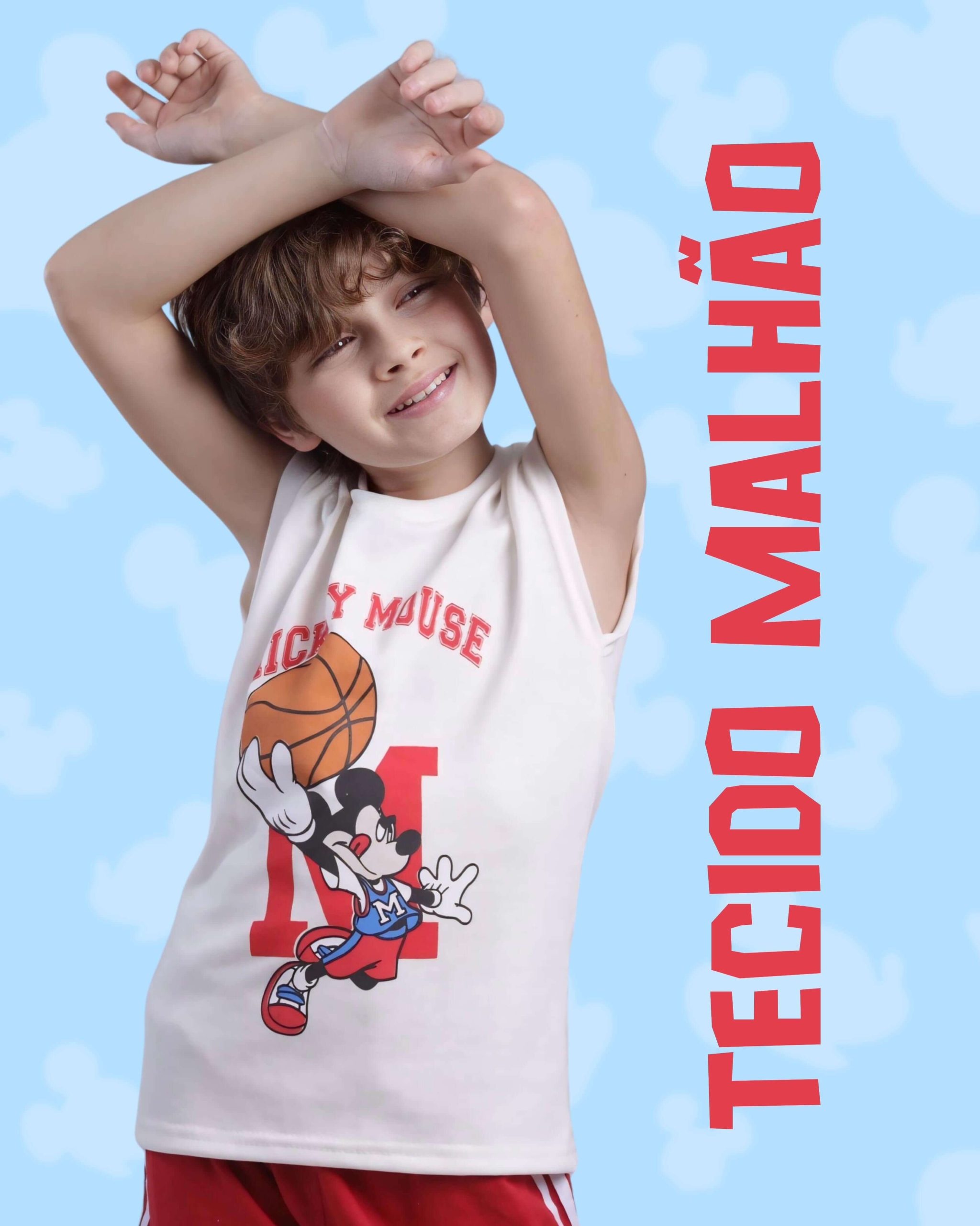 Conforto e maciez que só a malha proporciona, perfeita para o dia a dia das crianças. Com estampa divertida do Mickey jogando basquete, essa peça une qualidade, estilo e praticidade.