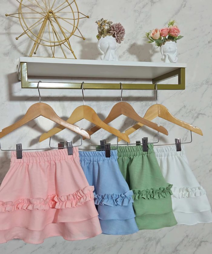 Saia Dunie perfeitamente linda com babadinhos ideal pra compor look’s estilosos e modernos confeccionada em tecido duna linho