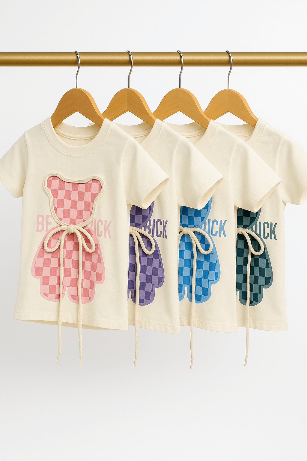 T-SHIRT URSO confeccionada no tecido de altissima qualidade , malha peruana estampada urso com detalhe de cordao costurado .