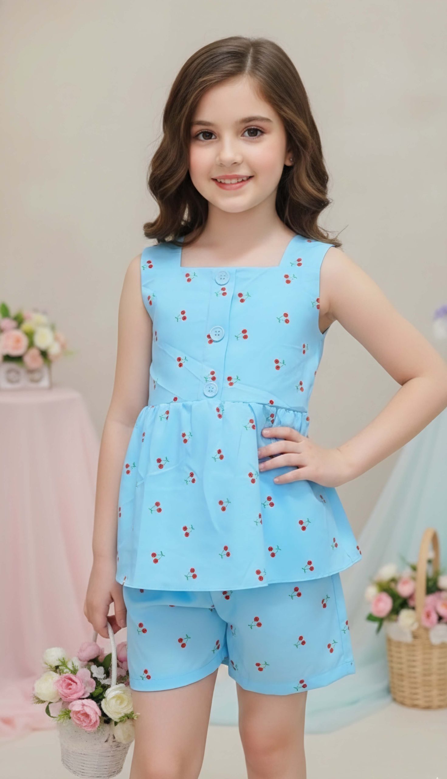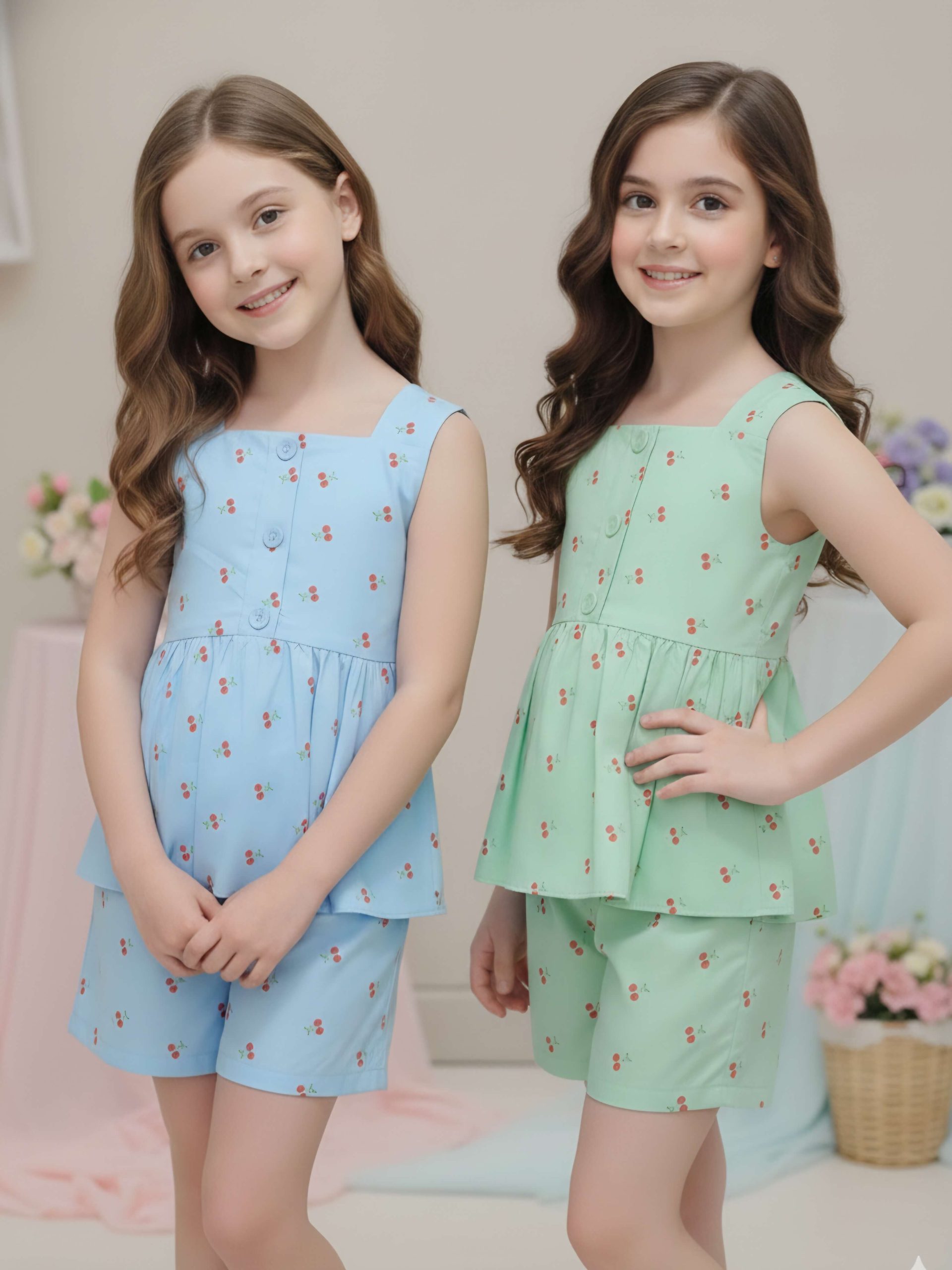 Conjunto super fofo e fresquinho. A blusa estilo bata tem um caimento leve, complementada por um short confortável que garante total liberdade de movimento. Tecido crepinho Leve e macio, Detalhe: Estampa exclusiva de cerejas e botões delicados na blusa.